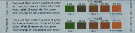 - Water hardness test strip, part number 826639