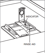 - Add rinse aid. The rinse aid compartment is full when the indicator changes to the color of the rinse aid.