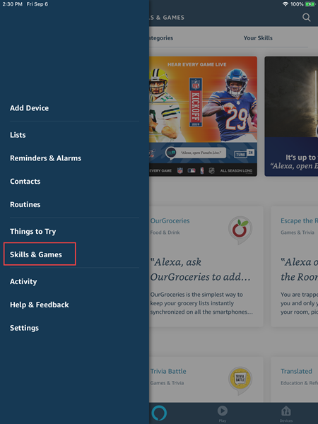 5. Tap the menu icon in the upper left corner to open the menu and search for new skills.