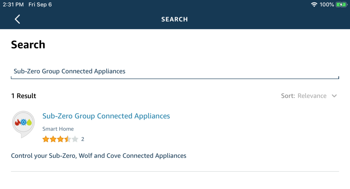 6. Search for the Sub-Zero Group Connected Appliances skill and select it.