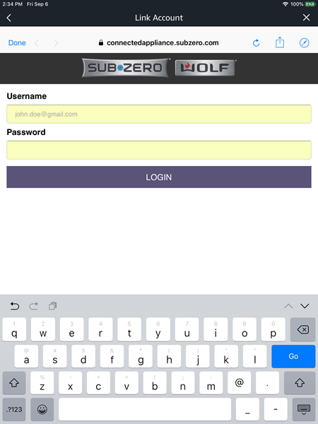 8. Within the skill, sign in using your username and password for the Sub-Zero Group Owner's App.