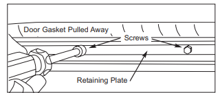 The door gasket is held in place by a retaining plate that is secured to the door assembly.