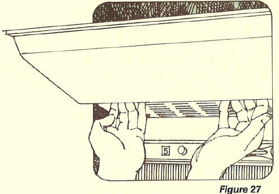 - Drop the front edge of the shield out of the channel and remove. The bulbs are now accessible.