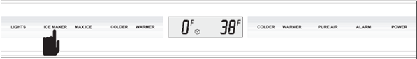 - Verify the ice maker is turned on. A single or triple ice cube appears on the display if it is on. If there are no cube(s) on the display next to the freezer temperature, press the ICE MAKER key to turn it on.
