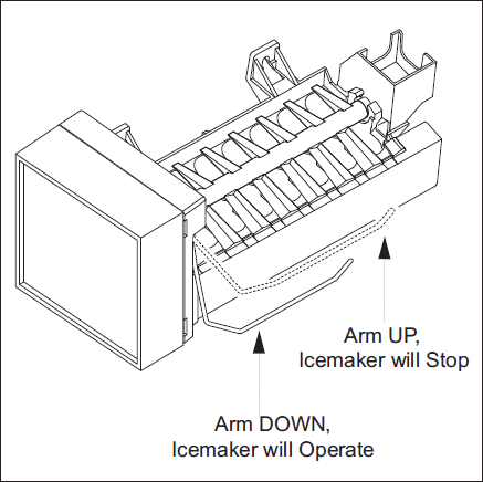 - Make sure the ice maker shut-off arm is in the down position. If the arm is up, turn the unit off and push down gently. The ice maker arm only moves an inch. See also, Ice Maker Control Arm Will Not Lower.