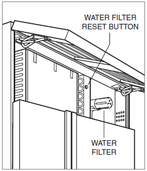 - Press and hold the filter reset button for five seconds to reset the water filter life monitor, as shown below.