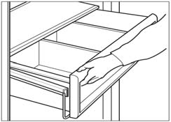 2. Remove the crisper glass shelf, then the crisper drawer. Water or ice may collect behind the drawer.