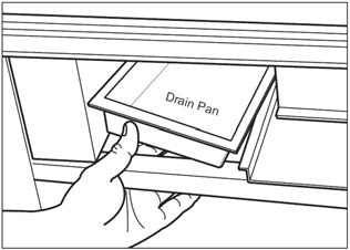 9. When done, remove and clean the drain pan, since solution sitting in the pan could damage the plastic. See Sub-Zero Drain Pan Removal.