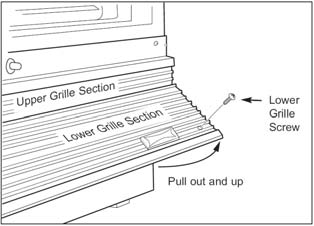 6.On 601, 501, and 201 models, also remove the lower grille by removing the screws on right and left corners. Then pull the bottom of the grille out and up to release it.
