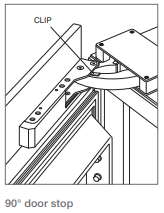 - The 90º door stop cannot be adjusted to open more or less than 90°.