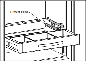- Depending on shelf configuration, shelves above the drawers and/or door shelves may need to be removed first to provide clearance to remove drawers.