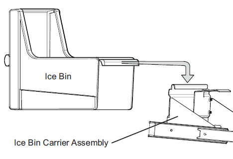 - Ice bin carriage assembly is crooked, not sliding in and out easily or locked in forward position
