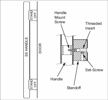 - Pro, tubular, or curved style handle on stainless steel door is loose