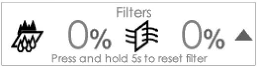 - Press and hold the dripping water icon on the far left for 5 seconds to select the water filter settings.