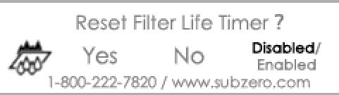 - Use this feature to disable the filter life timer when a reverse osmosis system is in place and the internal unit filter is not used.