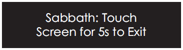 - The "black" Sabbath screen will be shown the entire time the unit is in Sabbath Mode.