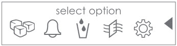 2. This opens the Options menu. Touch the ice cubes icon to turn the ice maker on or off.