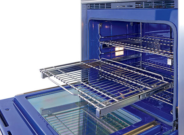 Full-extension ball-bearing racks are available for Dual Fuel and Gas Ranges, L Series Ovens, E Series Ovens, and M Series Ovens.
