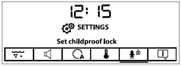 - When turning the Childproof Lock on, a screen appears with the code to unlock the childproof lock. Remember the code, as it will be needed to unlock the unit.