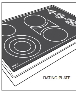 Depending on the unit's serial number, service may be required to take the unit in or out of Showroom mode. The serial number is on the rating plate on the underside of the cooktop as shown: