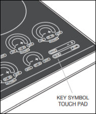 In lock mode, all touch pad operations on the control panel are disabled and all induction elements are turned off. A steady glowing light within the “key” symbol indicates that the cooktop is locked. If the cooktop has a Lock key instead of a key symbol, see CI Induction Cooktop Lock Mode.