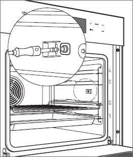 2. Place the probe in the thickest part of the food being cooked, then insert connector into the receptacle.