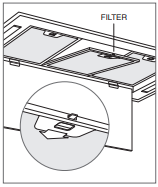 - To reset the filter light, refer to Ceiling-Mounted Hood Control Panel Filter Light.